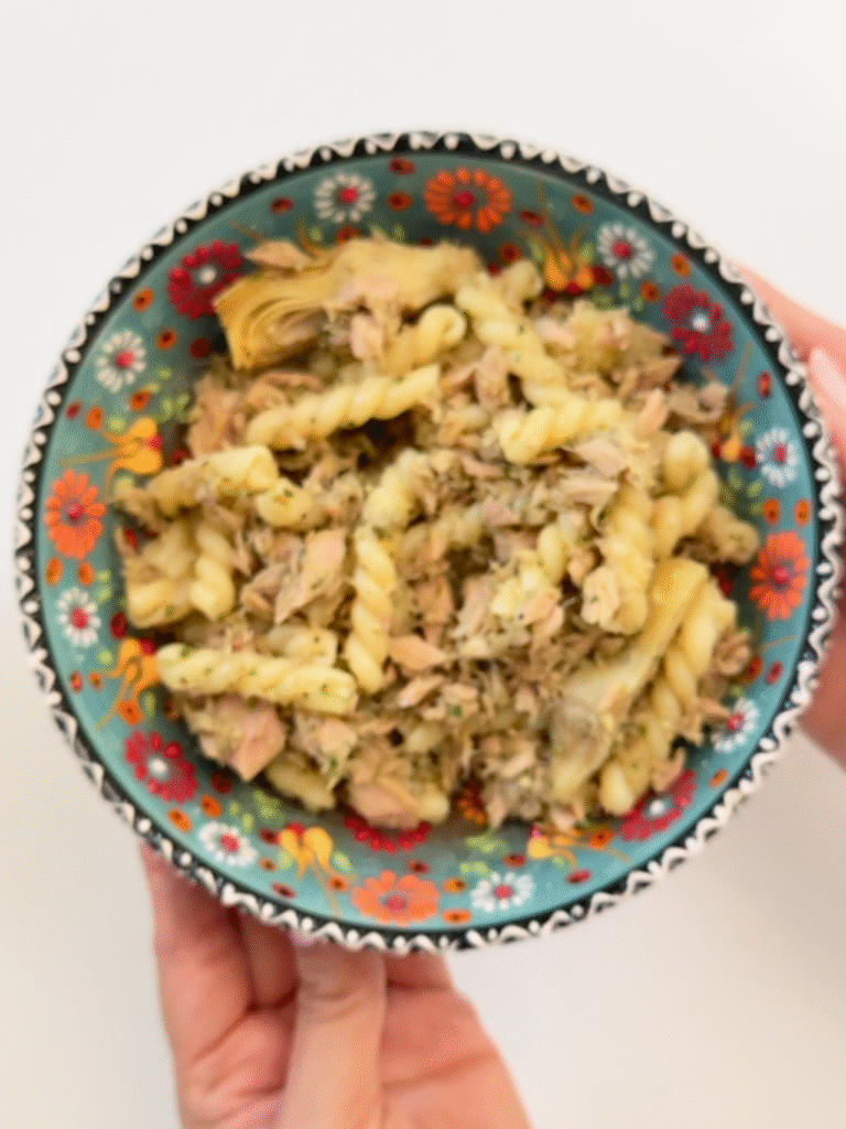 Pantry Tuna Pasta with Pesto and Artichoke Hearts