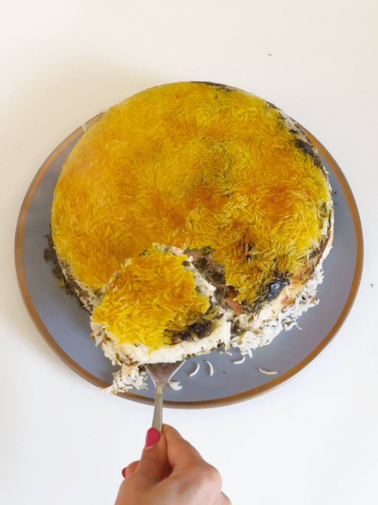 Persian Sabzi Polo with Salmon and Saffron Tahdig