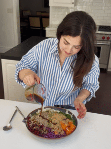 • Pour the dressing over the salad and toss until everything is evenly coated. Taste and adjust for seasoning.