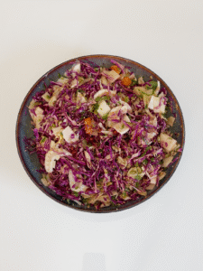 This crunchy fennel cabbage salad with orange and pomegranate is everything I love in a salad—bright, fresh, and full of texture. Thinly shaved cabbage, fennel, and kohlrabi create a crisp base, while sweet citrus and juicy pomegranate add bursts of flavor. Tossed with fresh herbs and a vibrant lemon and pomegranate molasses dressing, it’s the kind of salad that feels both refreshing and deeply satisfying. It works beautifully as a light meal or alongside a larger spread, especially when you’re craving something colorful and full of life.