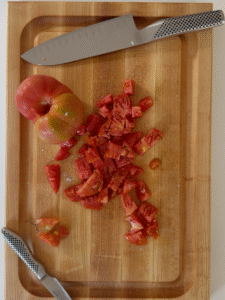 - 2 large heirloom tomatoes cut into 1/2 in cubes
