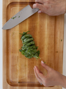 - 1/2 cup basil leaves (from about 3 large stems) tough stems removed and cut in a chiffonade