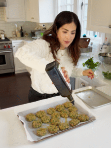 - Shape mixture into patties about 3 inches in diameter and ½ an inch thick. Arrange on the tray with an inch of space on all sides as to not overcrowd. Use a second tray if necessary. Drizzle additional 2 tbsp of olive oil over the top of the Aruk.