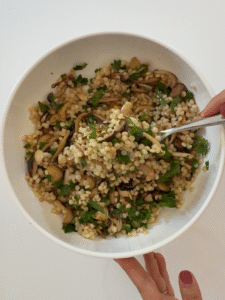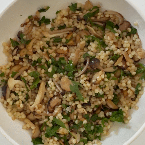 This Israeli couscous with mushrooms is a light yet hearty dish made with olive oil, fresh parsley, and a savory mushroom broth. Simple, comforting, and full of flavor.
