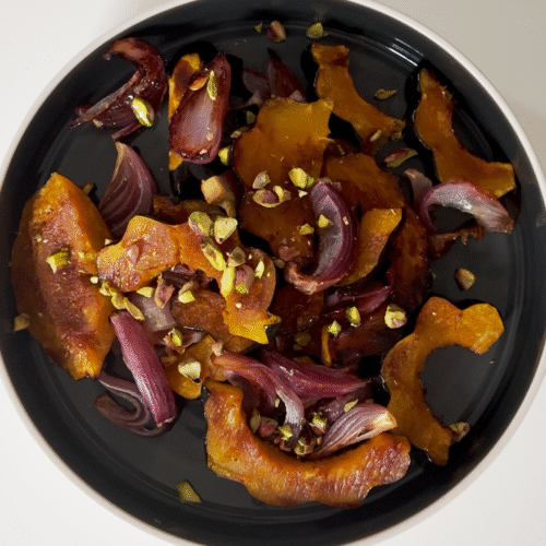 If you’re looking for a fall side dish that tastes as beautiful as it looks, this Roasted Acorn Squash with Pomegranate Molasses and Honey is the one. The squash gets perfectly caramelized in the oven alongside sweet red onions, then it’s finished with a sticky-tangy glaze that makes every bite irresistible. Topped with crunchy pistachios and fresh pomegranate arils, it strikes that ideal balance of sweet, savory, and bright. It’s simple enough for a weeknight dinner but impressive enough for any holiday table and it brings all the cozy fall flavors in one stunning dish.