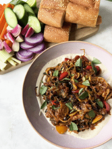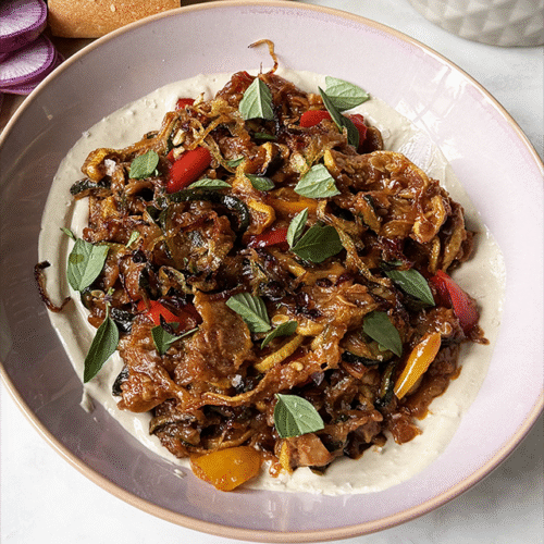 A creamy, savory dip made with roasted zucchini, tahini, garlic, and a touch of tomato paste for depth. It’s rich, slightly smoky, and perfect for scooping with warm bread or serving alongside grilled dishes.