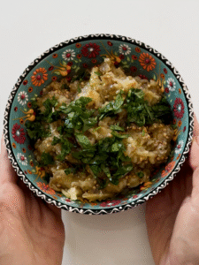 Baba ganoush has always been a staple on our family table. Growing up, my mom would make it for Shabbat, charring the eggplants right in the oven until they were smoky and tender. This version takes that same comforting dip and simplifies it even more—using a grill pan to get that rich, charred flavor in just 30 minutes. Creamy, garlicky, and topped with olive oil, Maldon salt, and fresh parsley, it’s the easiest way to enjoy a classic Middle Eastern eggplant dip at home.