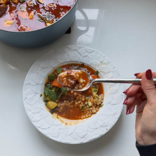 A rich, slow-simmered Yemenite short rib soup made with beef short ribs and bones, hawaij, San Marzano tomatoes, and tender vegetables in a deeply flavorful broth. Hearty, comforting, and perfect for a cozy meal.